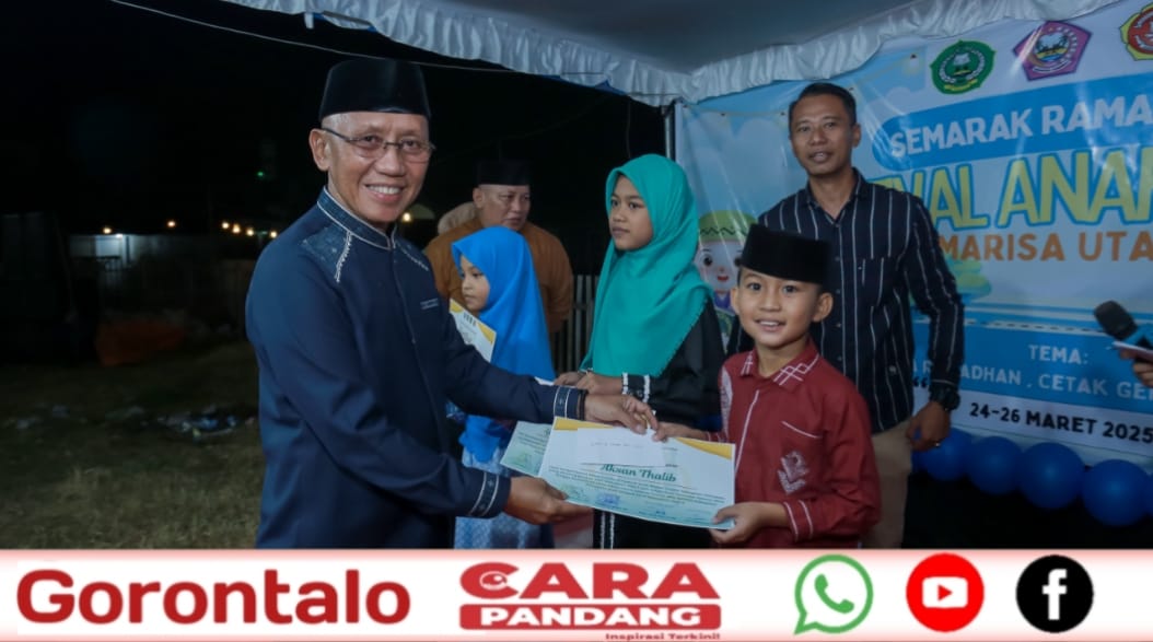 POHUWATO, CARAPANDANG - Wakil Bupati Pohuwato, Iwan S. Adam, menghadiri penutupan Semarak Ramadan dan Festival Anak Saleh yang mengusung tema “Cahaya Ramadan Cetak Generasi Qurani”, Rabu, (26/03/2025). Acara yang berlangsung di Lapangan Desa Marisa Utara ini digelar selama tiga hari, dari 24 hingga 26 Maret 2025, dengan berbagai perlombaan keagamaan.