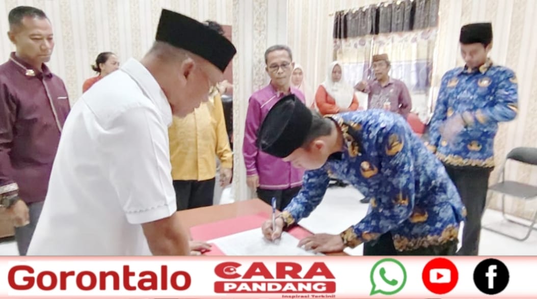 POHUWATO, CARAPANDANG - Wakil Bupati Pohuwato, Iwan S. Adam, memimpin langsung Pengukuhan dan Pengambilan Sumpah Calon Pegawai Negeri Sipil (CPNS) menjadi Pegawai Negeri Sipil (PNS) Formasi Sekolah Tinggi Transportasi Darat (STTD) pada Dinas Perhubungan Kabupaten Pohuwato, di Ruang Kepala Dinas Perhubungan, Kamis (04/12/2025).