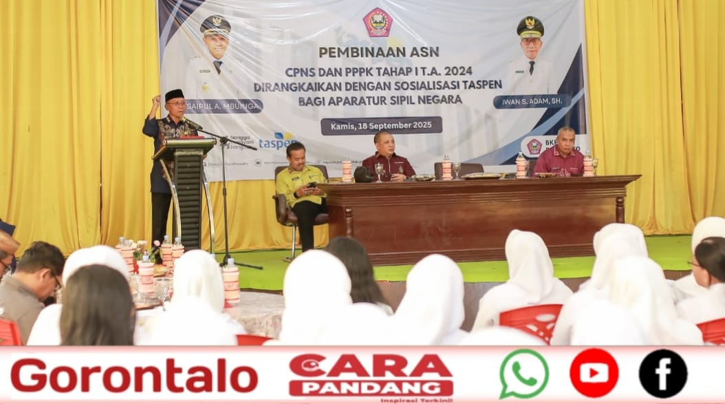 Wakil Bupati Pohuwato, Iwan S. Adam, secara resmi membuka kegiatan Pembinaan CPNS dan PPPK Tahap I Tahun 2024 yang dirangkaikan dengan Sosialisasi Taspen bagi Aparatur Sipil Negara (ASN), Kamis (18/09/2025) di Gedung Panua.