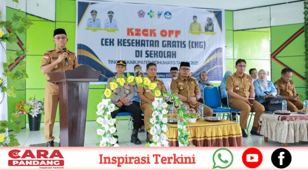POHUWATO, CARAPANDANG - Wakil Bupati Pohuwato, Iwan S. Adam, secara resmi membuka Kick Off Cek Kesehatan Gratis (CKG) di Sekolah tingkat Kabupaten Pohuwato Tahun 2025 di SMA Negeri 1 Paguat, Selasa, (26/08/2025).