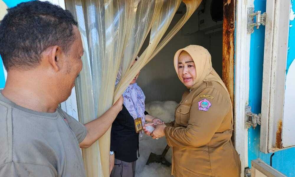 POHUWATO, CARAPANDANG - Ketersediaan stok ikan yang berada di Gudang Beku Portabel, di Desa Patuhu, Kecamatan Randangan ditinjau Wakil Bupati Pohuwato, Suharsi Igirisa, didampingi Staf Ahli Bupati Bidang Ekonomi dan Pembangunan, Bahari Gobel, Kadis Perikanan, Amrin Umar, Kadis Kominfo, Kadir Amran, beserta pimpinan OPD lainnya yang tergabung dalam TPID Kabupaten Pohuwato, Selasa, (07/05/2024).