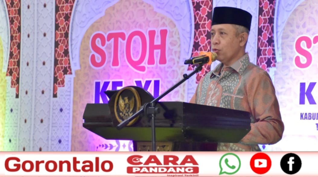 POHUWATO, CARAPANDANG - Asisten Pemerintahan dan Kesra, sekaligus sebagai Wakil Ketua 1 LPTQ Kabupaten Pohuwato, Arman Mohamad, mewakili Bupati Pohuwato menutup dengan resmi Seleksi Tilawatil Qur’an dan Hadis (STQH) XI tingkat Kabupaten Pohuwato yang berlangsung di Gedung Panua, Jumat, (30/05/2025).
