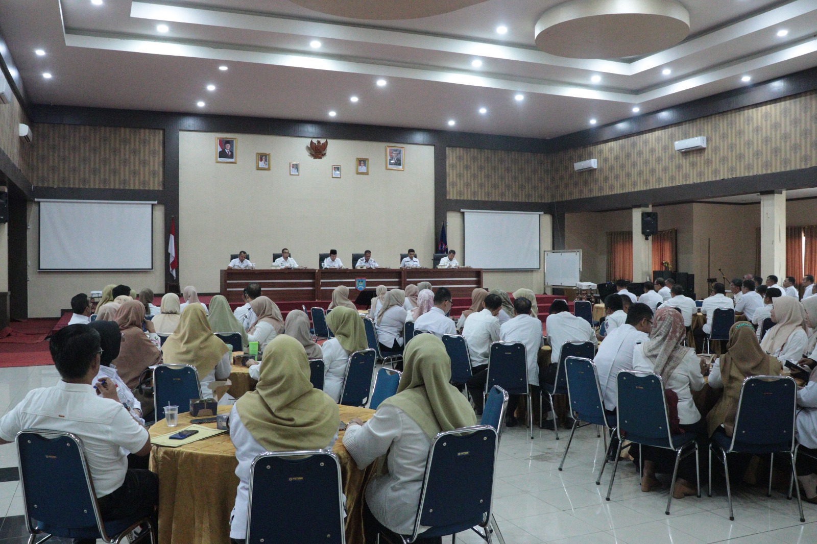 Rakor yang berlangsung pukul 21.00 WIB ini dihadiri Wakil Wali Kota Elzadaswarman, Sekretaris Daerah Rida Ananda, para Asisten Setdako, Staf Ahli, seluruh Kepala OPD, Direktur RSUD Adnaan WD, Direktur PAMTIGO, para camat, lurah, kepala puskesmas, serta pejabat struktural lainnya.