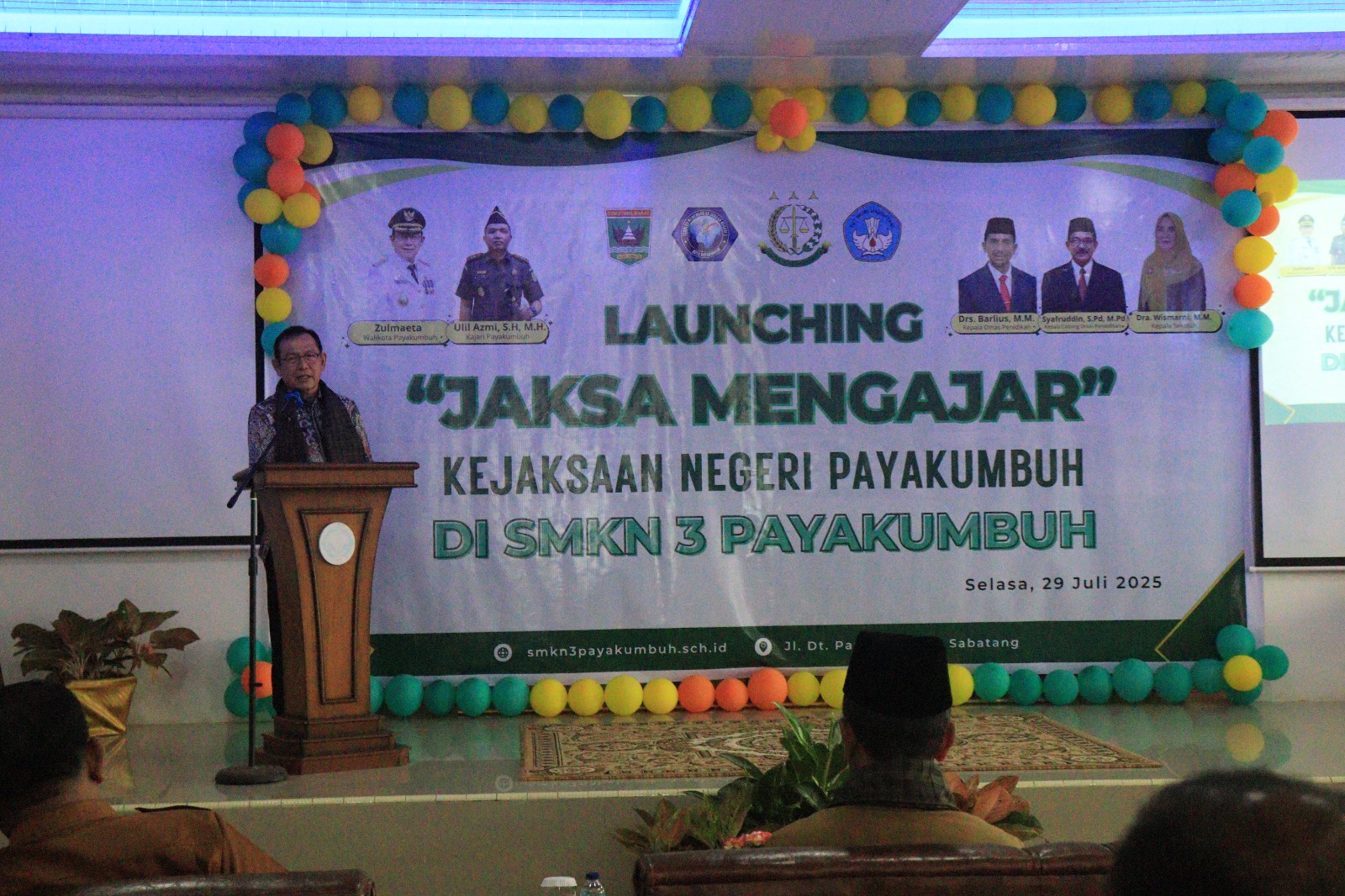 PAYAKUMBUH, CARAPANDANG - Pemerintah Kota Payakumbuh terus menunjukkan komitmen kuat dalam membangun generasi muda yang sadar hukum. Hal ini terlihat dari kehadiran langsung Wali Kota Payakumbuh, Zulmaeta, dalam peluncuran program Jaksa Masuk Sekolah (JMS) yang digagas Kejaksaan Negeri Payakumbuh, Selasa malam (29/7/2025) di SMKN 3 Payakumbuh.