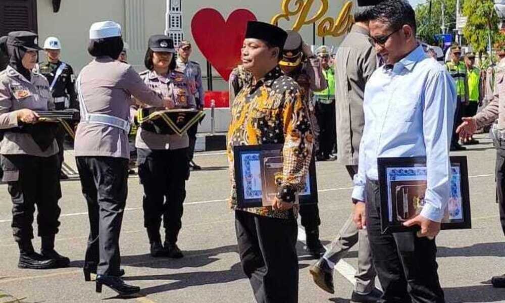 AGAM, CARAPANDANG.COM - Wali Nagari Pasia Laweh menerima penghargaan dari dari Kapolresta Bukittinggi Komber Kombes. Pol. Yessi Kurniati, S.I.K., M.M pada Apel gelar pasukan operasi ketupat Singgalang 2023, Pengamanan idul Fitri 1444h tahun 2023 di Halaman Polresta Bukittinggi pada Senin (17/04) pagi.