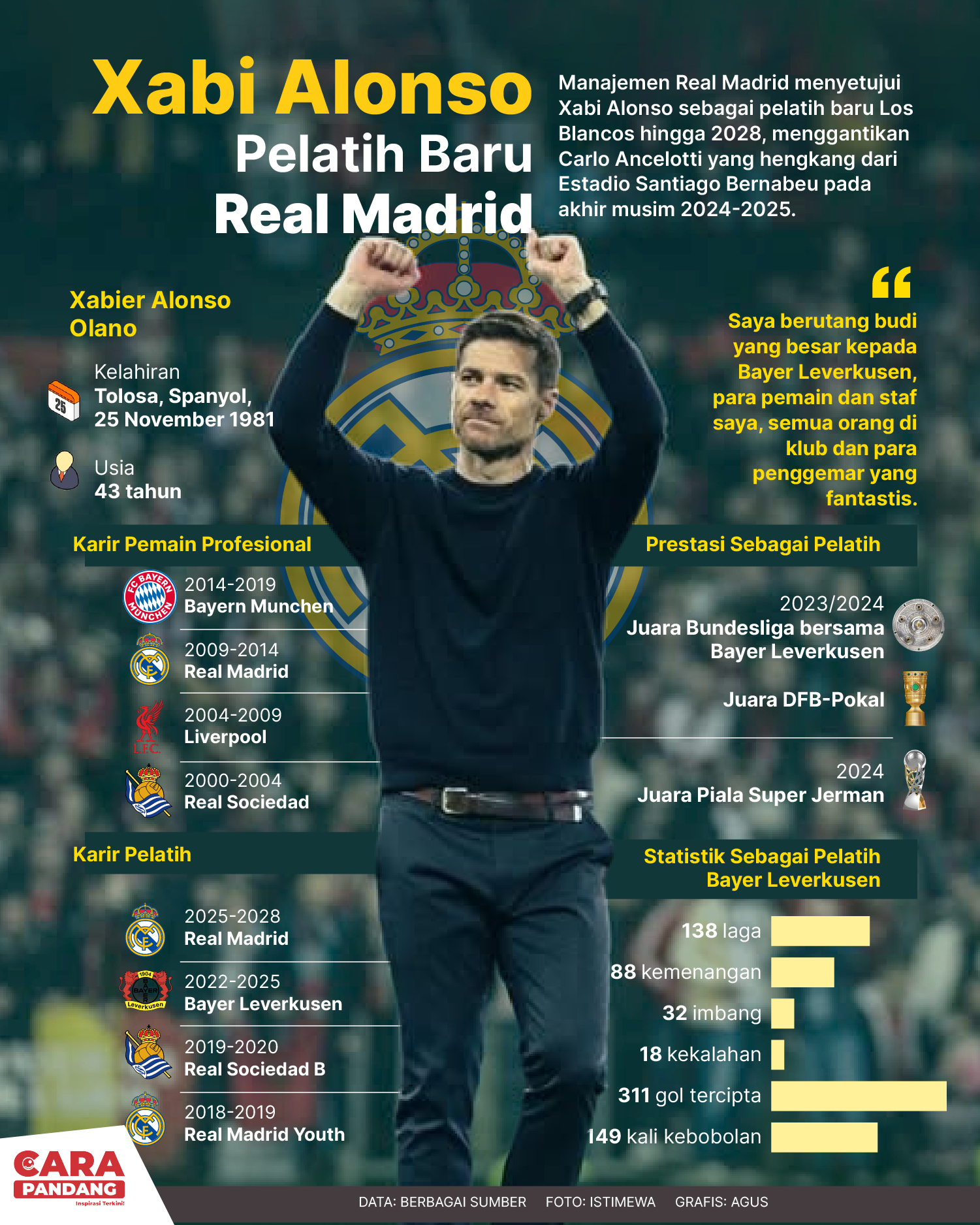 Beranda Infografis Xabi Alonso Pelatih Baru Real Madrid Infografis Xabi Alonso Pelatih Baru Real Madrid Penulis Amira Izzati - 15 Mei 2025 12:00 0 CARAPANDANG - Xabi Alonso Pelatih Baru Real Madrid Tags Berita Sebelumnya DKI Terus Dorong Pengakuan Peran Perempuan Dalam Pembangunan Berita Berikutnya PIP Instrumen Penting Wujudkan Pendidikan Bermutu untuk Semua LEAVE A REPLY Cancel reply Comment: Please enter your comment! Name:* Please enter your name here Email:* You have entered an incorrect email address! Please enter your email address here Website: Save my name, email, and website in this browser for the next time I comment. Berita Teratas Pemimpin Thailand dan Kamboja Berbicara via Telepon dengan Trump, Bahas Konflik Perbatasan Potret Timur Tengah: Badai Musim Dingin Tewaskan Setidaknya 14 Orang di Gaza yang Porak-Poranda akibat Perang Program Edukasi Bermain Bantu Anak Atasi Kecemasan Saat MRI Gie, Prabowo Presiden Sekarang Masakan Italia Diakui sebagai Warisan Budaya Takbenda UNESCO Berita Terkait Berita Terkait Distribusi Bantuan Banjir Sumatra Lewat Udara Maliq - 06 Desember 2025 14:16 Dampak Banjir Aceh, Sumut dan Sumbar Zoel Rachman - 05 Desember 2025 08:47 Daftar Dosa Korupsi Netanyahu Zoel Rachman - 04 Desember 2025 12:52 Kutipan Pidato Hari Guru Nasional 2025 Maliq - 28 November 2025 12:12