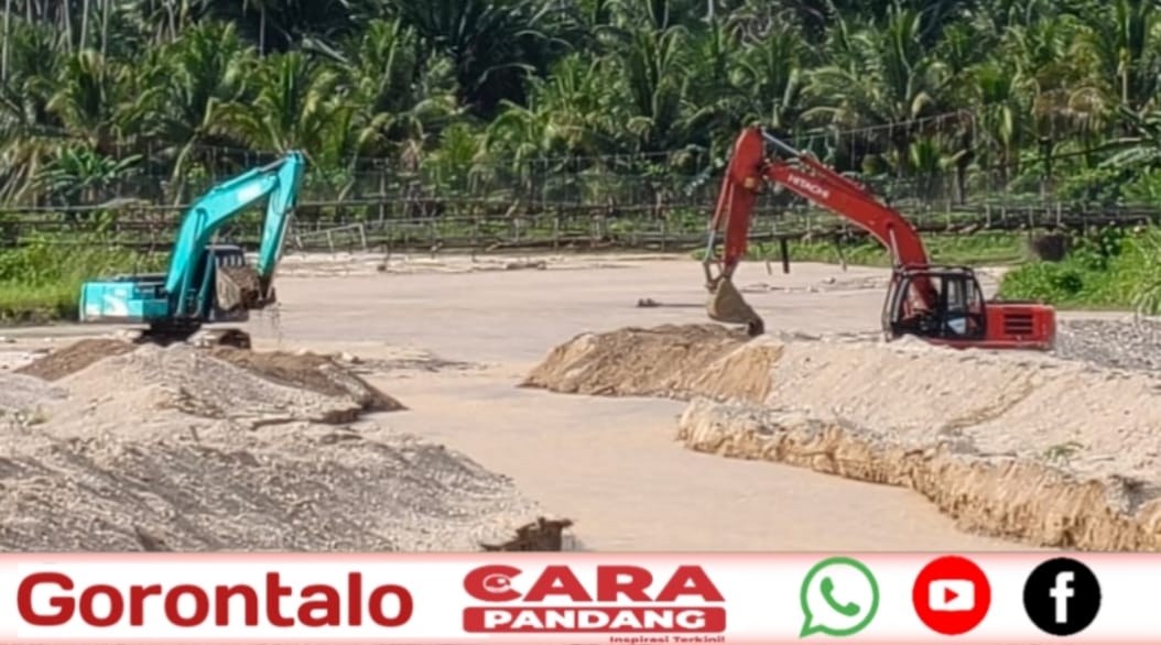 POHUWATO, CARAPANDANG - Tim dari YR terus berjibaku memperbaiki aliran sungai sekaligus melakukan pengerukan sedimen di bendungan Desa Taluduyunu, Kecamatan Buntulia, Kabupaten Pohuwato, Sabtu (13/09/2025).