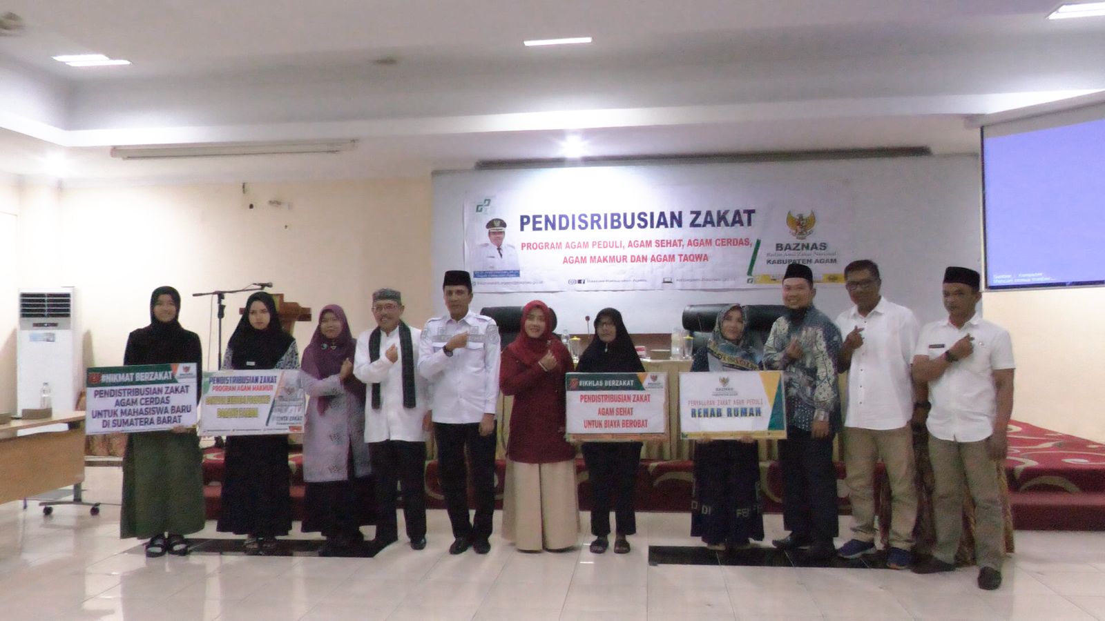 AGAM, CARAPANDANG - Badan Amil Zakat Nasional (Baznas) Kabupaten Agam melaksanakan pendistribusian zakat di wilayah Agam Barat pada Rabu (18/9) di aula Bappeda Kabupaten Agam.